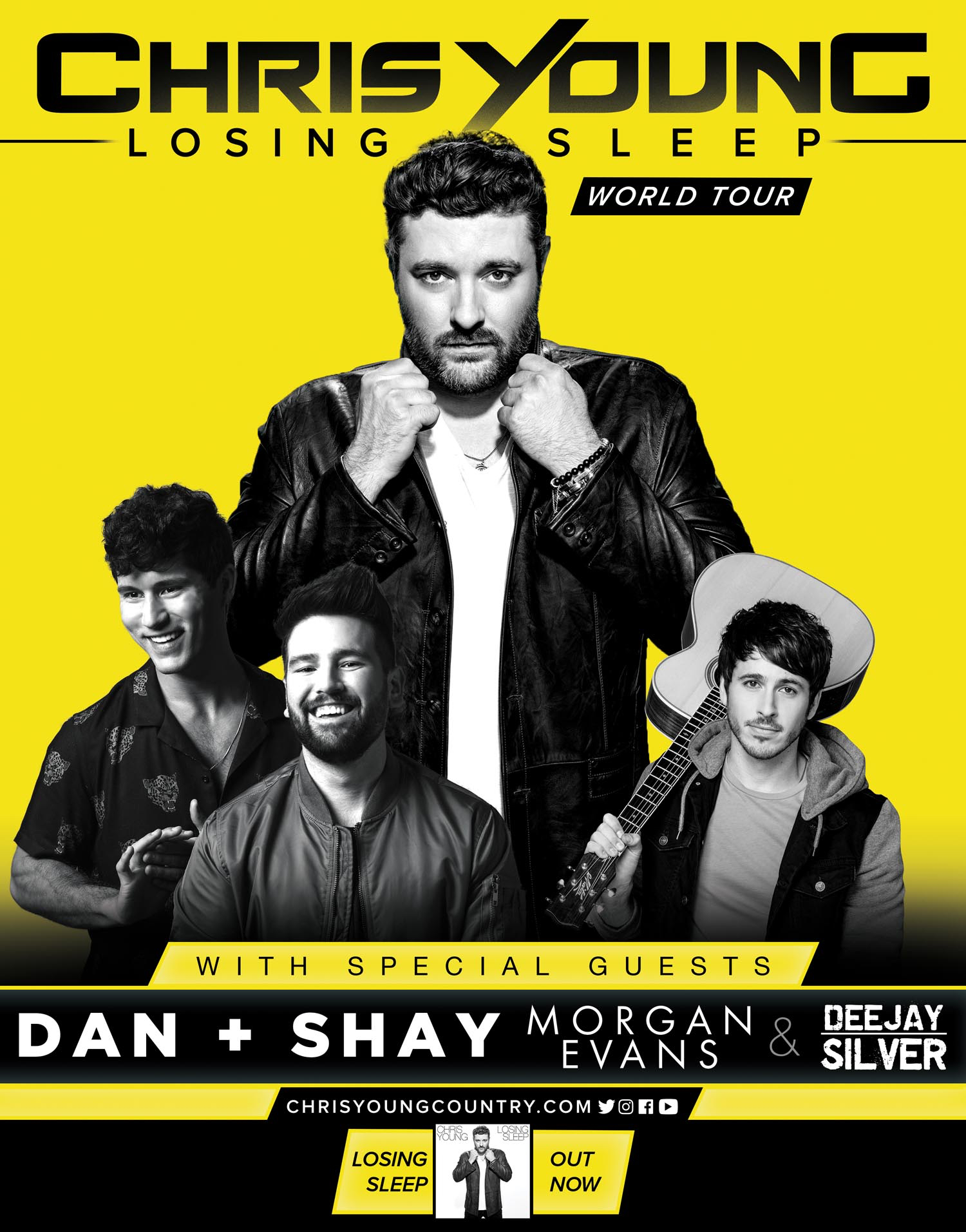 June 20, 2018 – After playing more than 30 sold-out arena and amphitheater dates, being named an ACM Male Vocalist nominee and scoring his 10th No. 1 single, Chris Young has added 15 more shows to his “Chris Young Losing Sleep 2018 World Tour.” Special guests Dan + Shay, Morgan Evans and Dee Jay Silver will join the multi-platinum entertainer, hailed “a true country singer” (Lincoln Journal Star) who has “handily made the leap to headliner status” (Green Bay Press Gazette) and puts on a “riveting performance” (La Crosse Tribune), on the added dates.