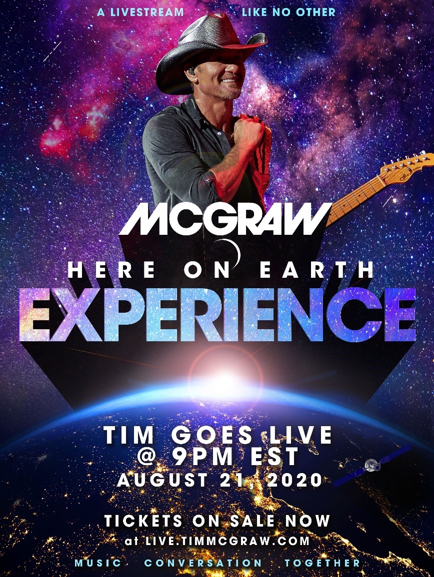 This one-of-a-kind livestream event will give fans a rare inside look at the release of Tim McGraw’s new album Here On Earth. Continually live from Nashville, fans will be able to come along with McGraw as he chats with songwriters, interacts with the band and reveals the stories behind the new songs. With the backing of a five-piece super-acoustic band, McGraw will play some old favorites along with some new tracks. Up-close and live, this intimate performance will prove to be a special show for anyone watching.